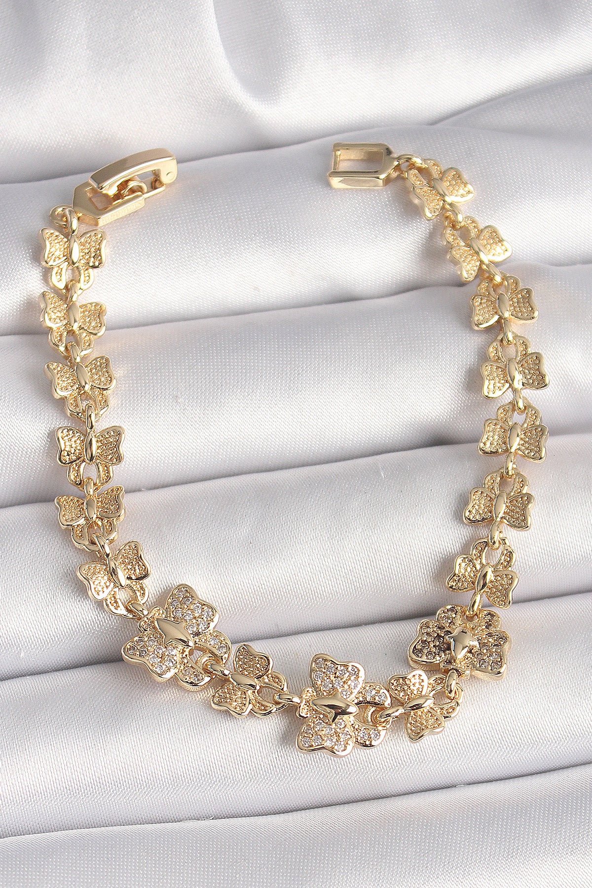 Pirinç Gold Renk Zirkon Taşlı Kelebek Model Zincir Kadın Bileklik
