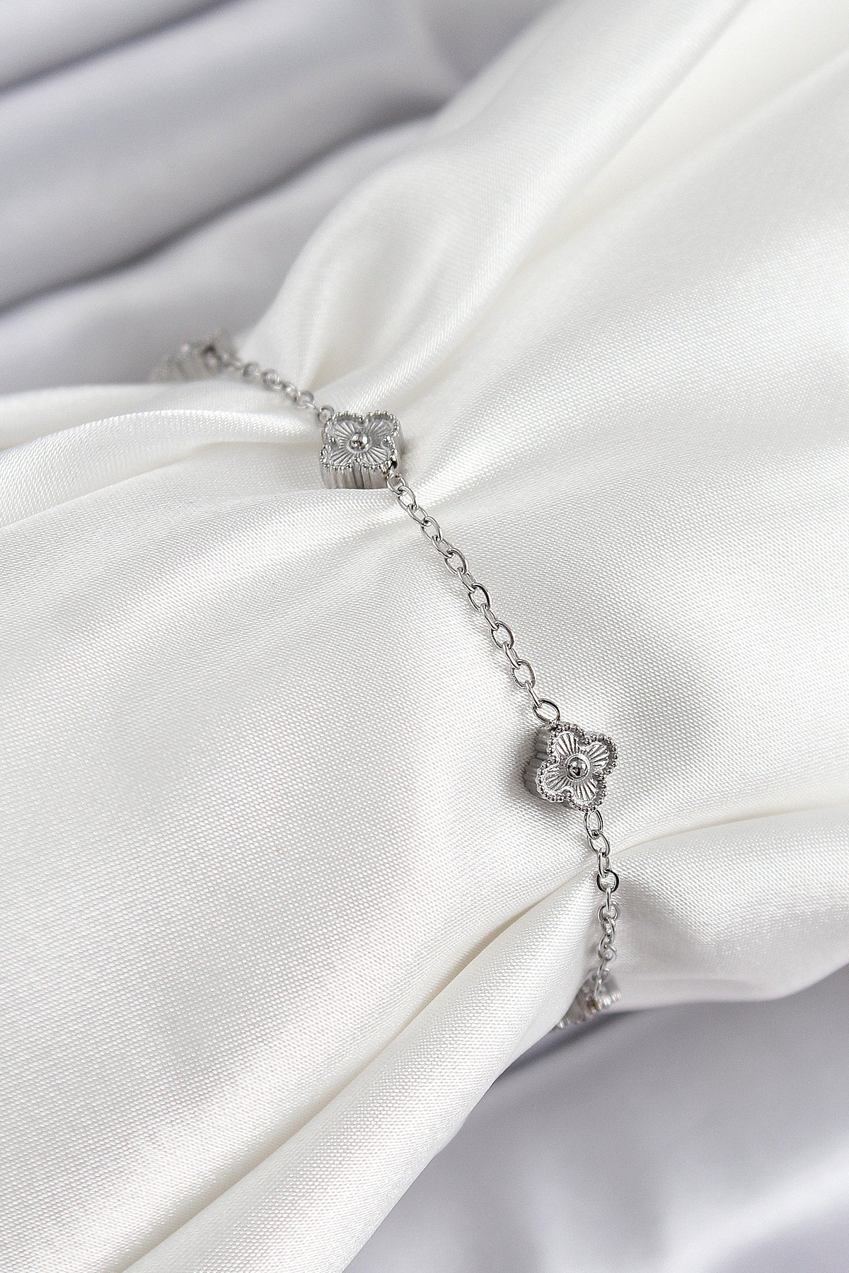 316L Çelik Yonca Model Gümüş Renk Kadın Bileklik