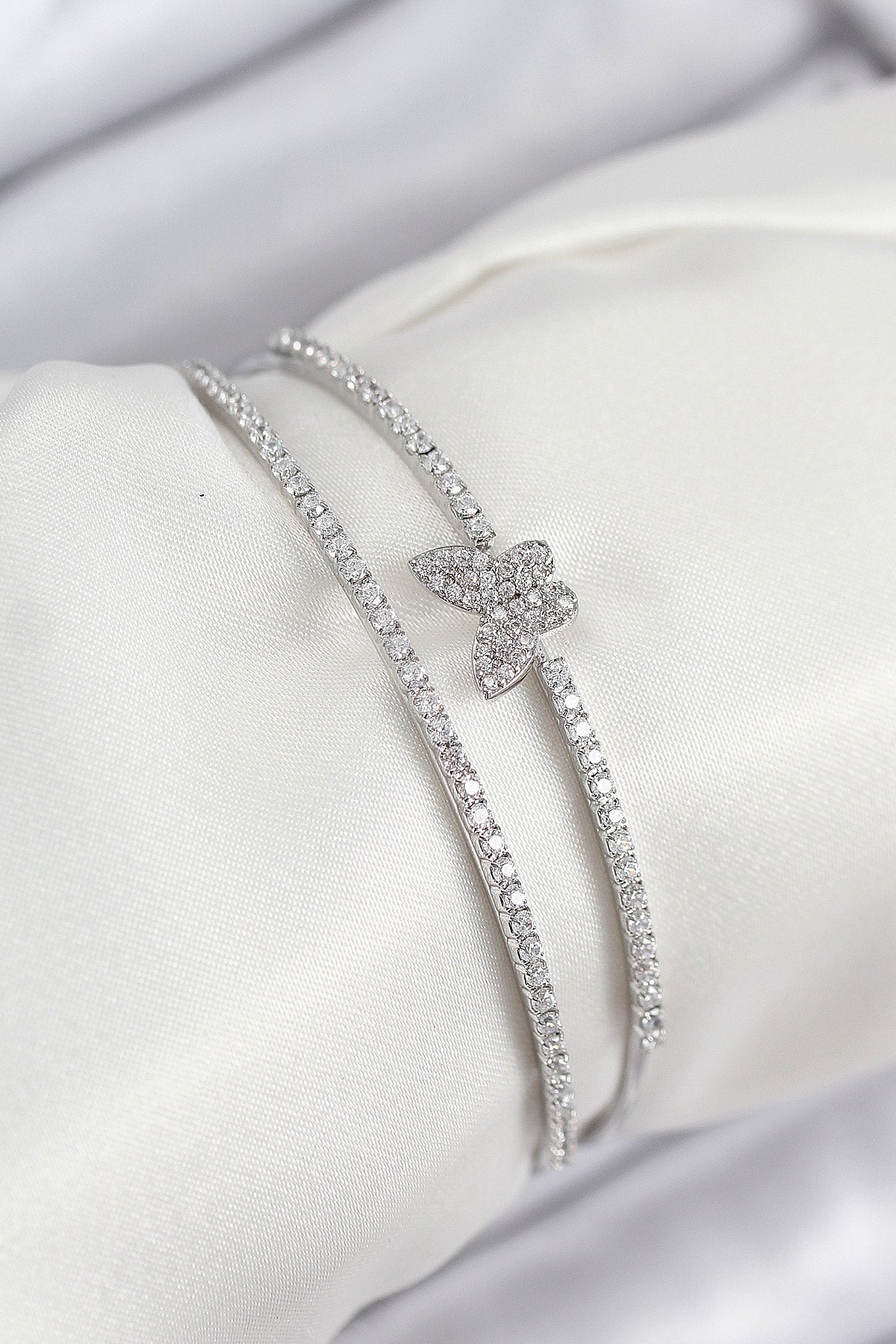 Pirinç Zirkon Taşlı Kelebek Model Gümüş Renk Kadın Bileklik