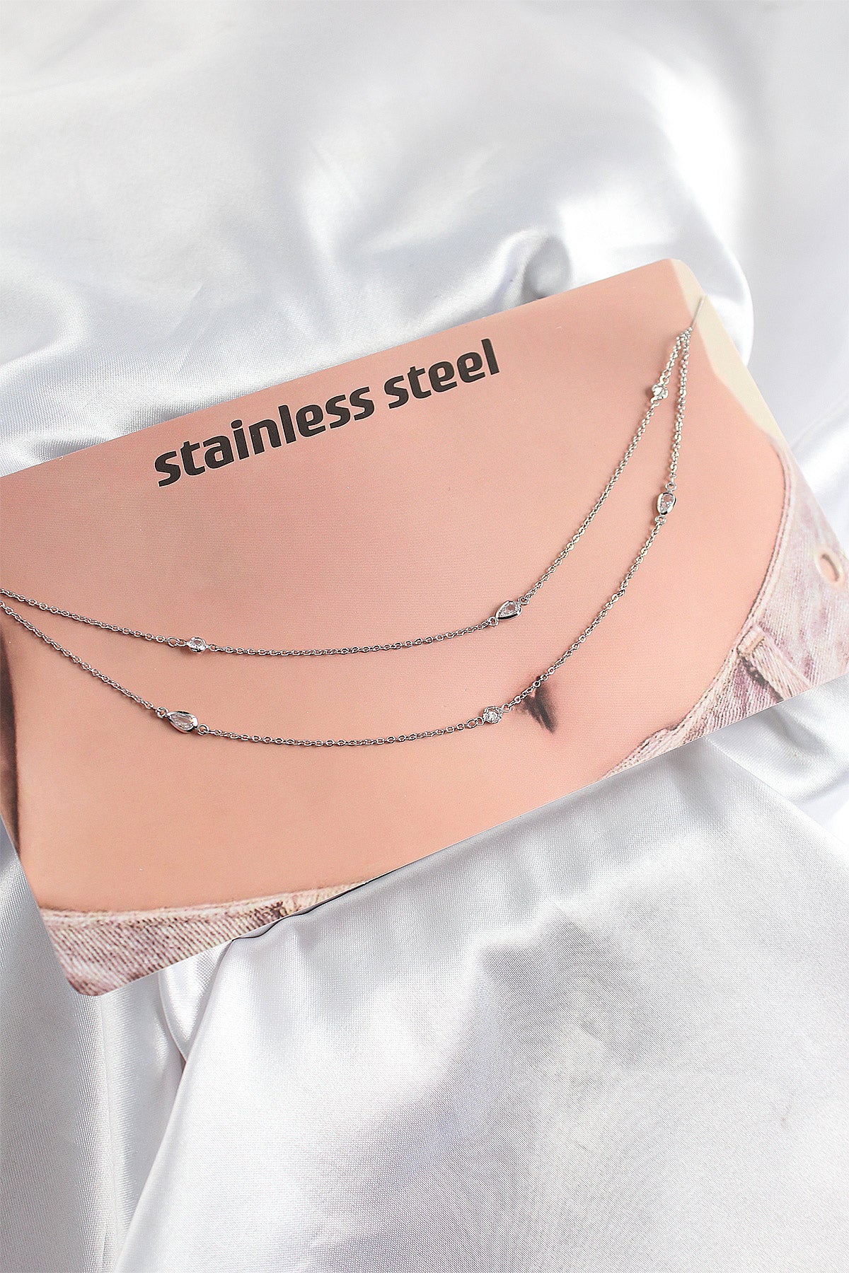 316L Çelik Zirkon Taşlı Damla Model Gümüş Renk Göbek Bel Zinciri