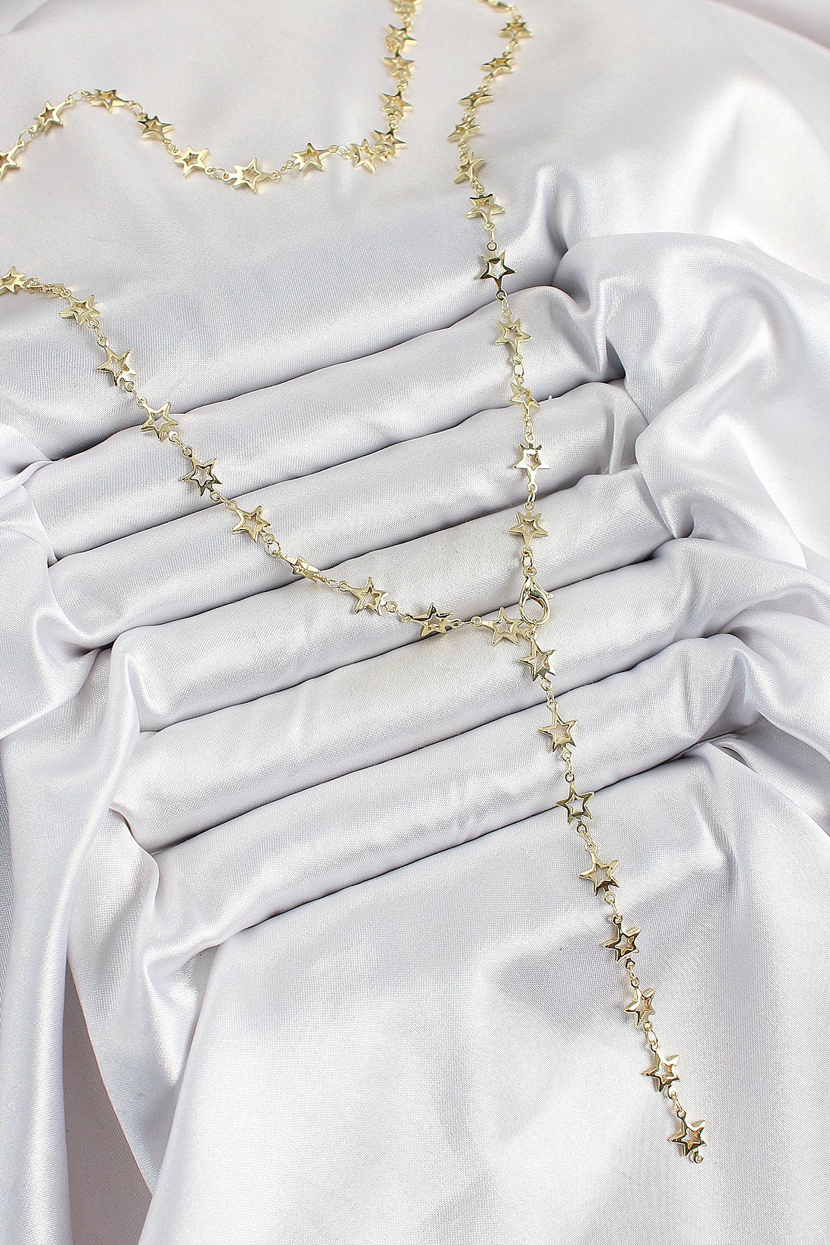 Pirinç Gold Renk Yıldızlı Kadın Y Kolye