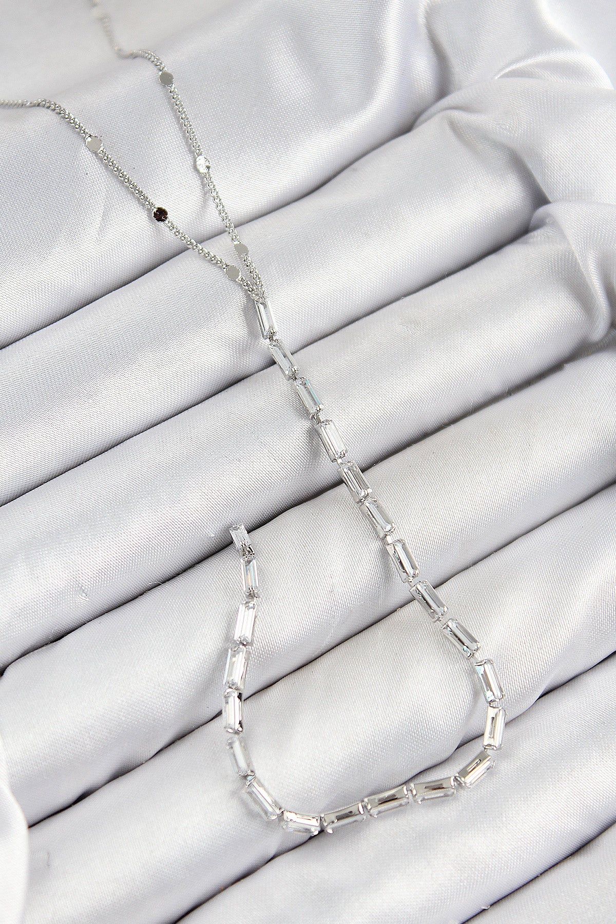 Pirinç Zirkon Taşlı Model Gümüş Renk Y Kolye