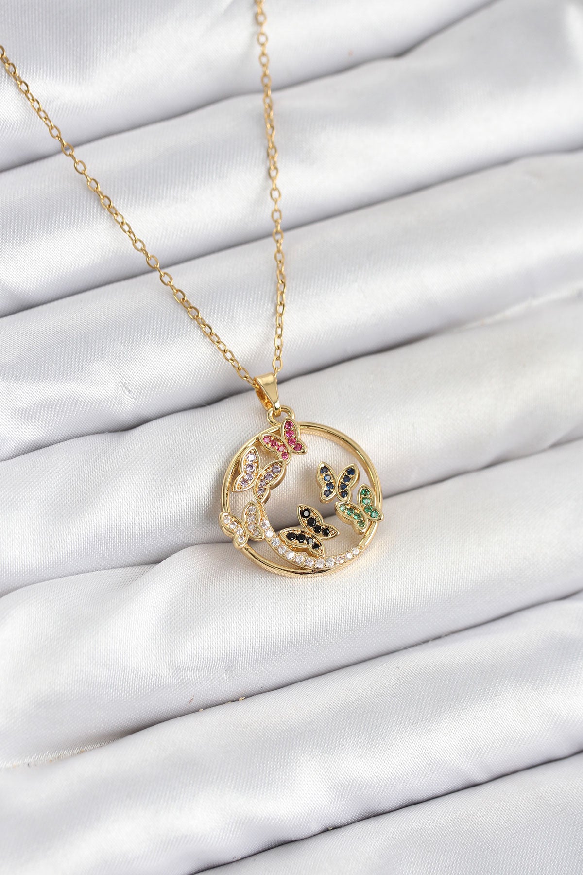 316L Çelik Zincir Gold Renk Zirkon Taşlı Kelebekli Kadın Kolye