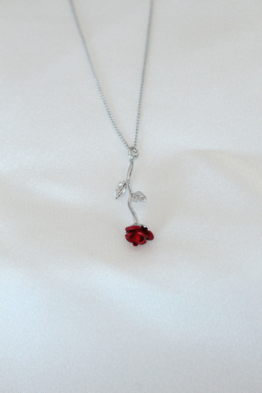 Gümüş Kaplama Kırmızı Gül Figürlü Kadın Kolye