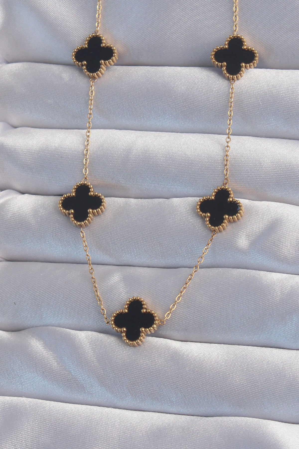 316L Çelik Gold Renk Siyah Mineli Yonca Kolye