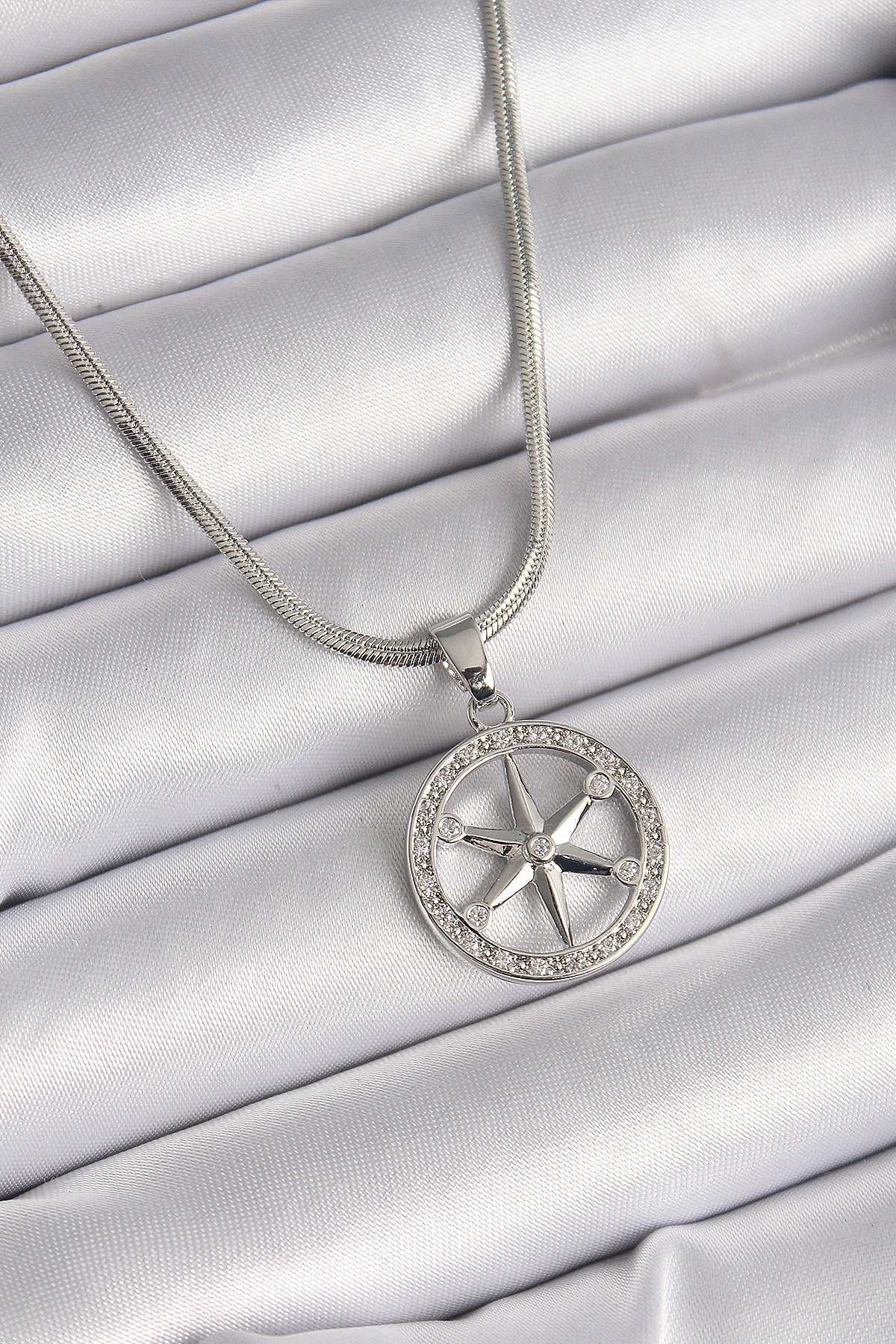 316L Çelik Gümüş Renk İtalyan Zincir Zirkon Taşlı Kutup Yıldız Model Kadın Kolye