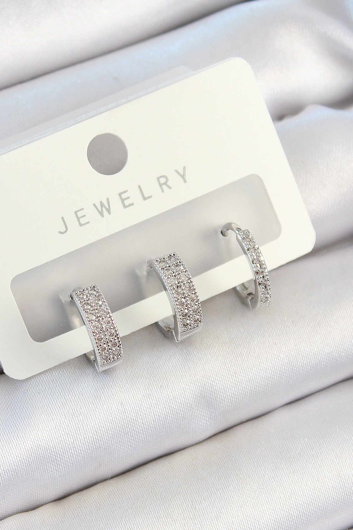 Pirinç Zirkon Taşlı Halka Model Gümüş Renk 3'lü Çift Kadın Küpe Set