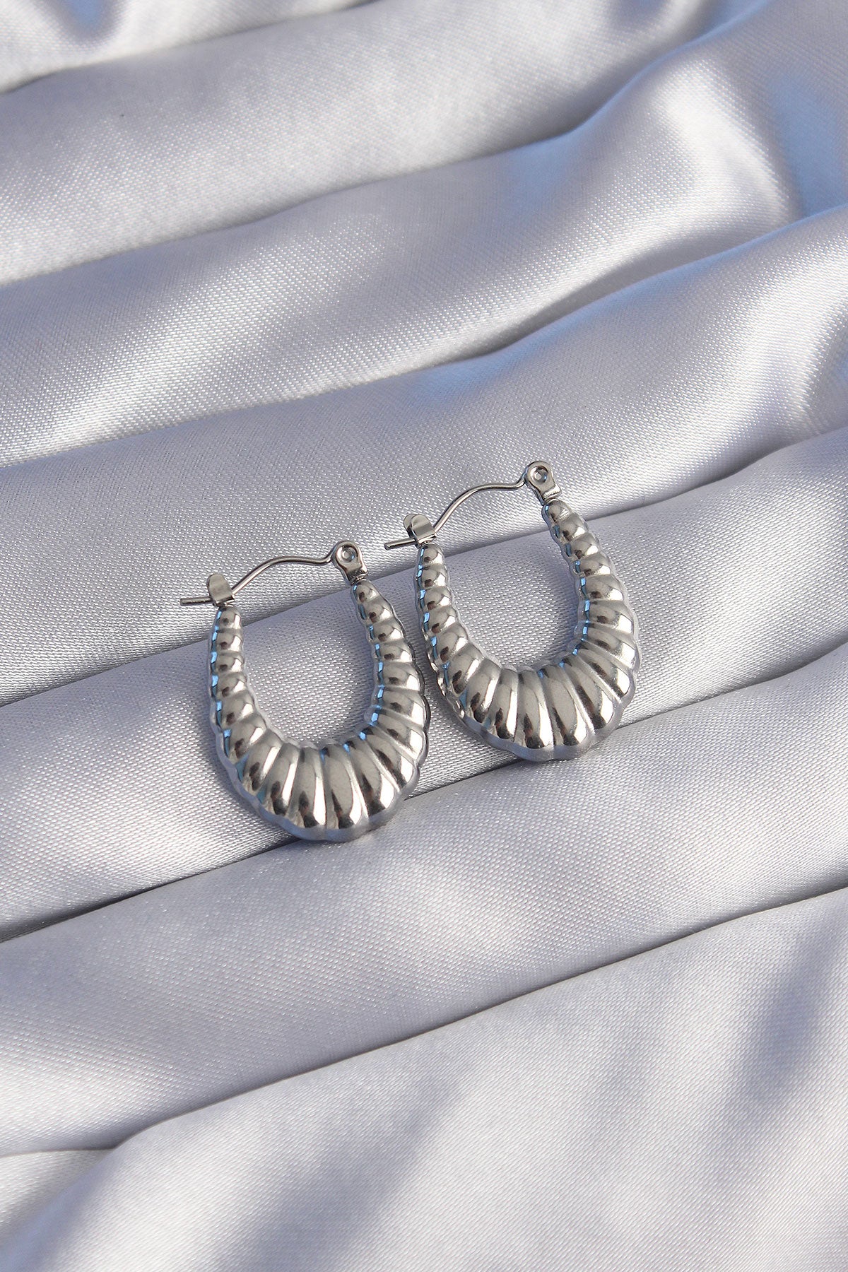 316L Çelik Gümüş Renk Uzun Baklava Görünümlü Küpe