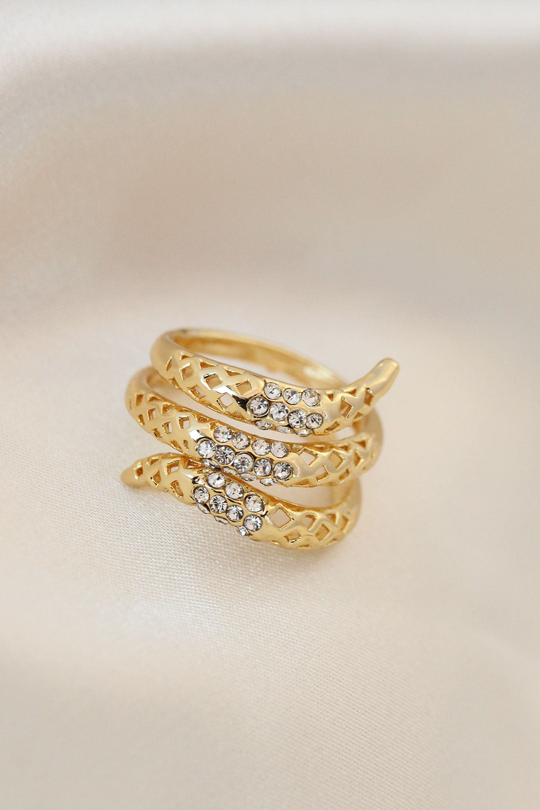 Ayarlamalı Altın Renk Metal Zirkon Taşlı Yüzük